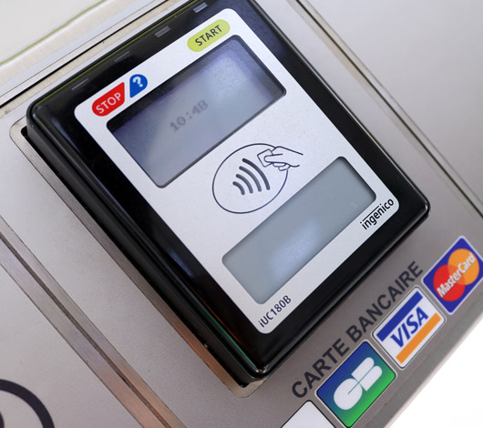 Centrale de paiement acceptant pièces et billets avec rendu monnaie et, nouveau, le paiement en Carte Bancaire sans contact.